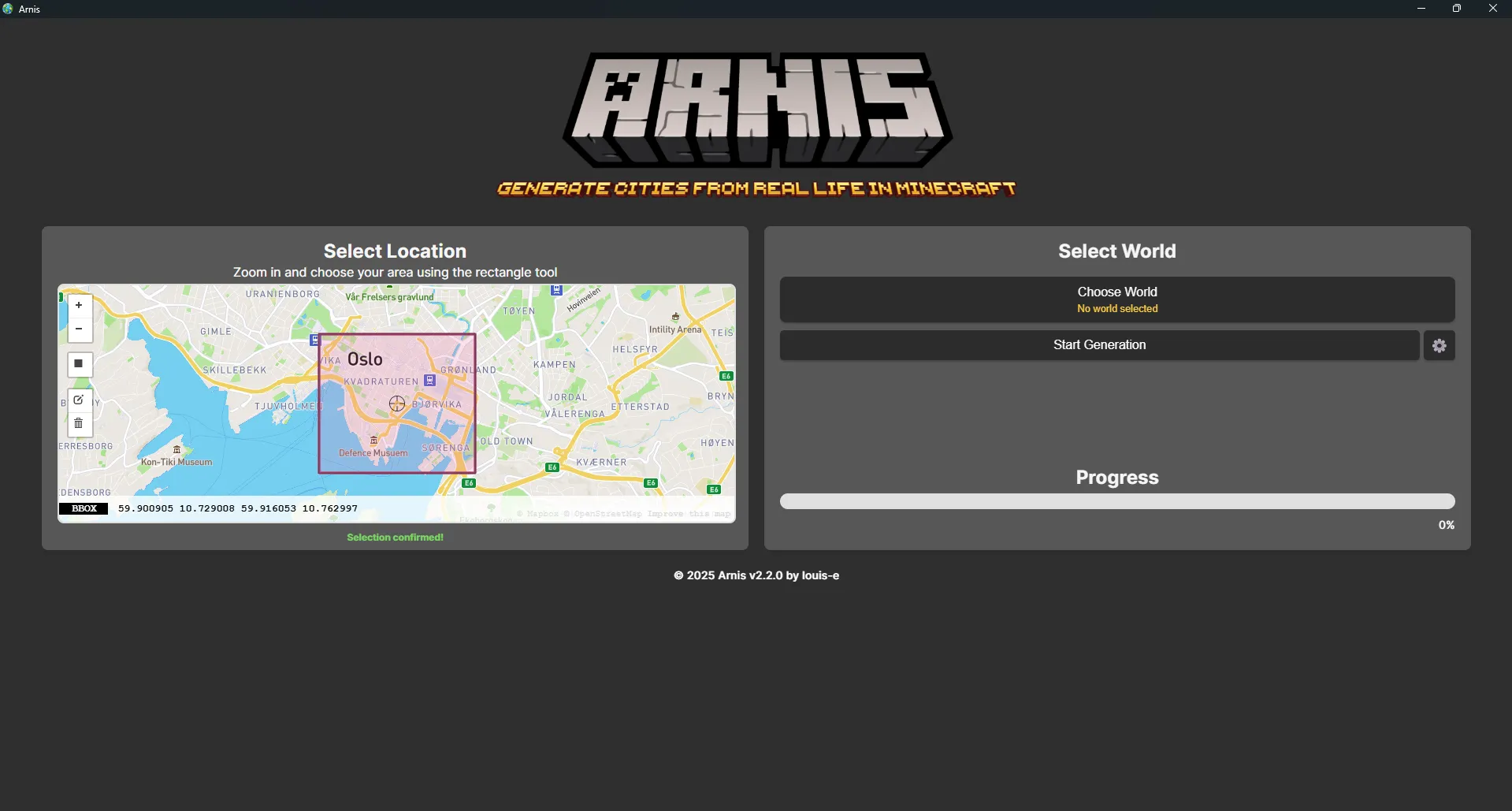 After configuring the parameters, simply press the start button. Arnis will begin creating the city, which may take some time.