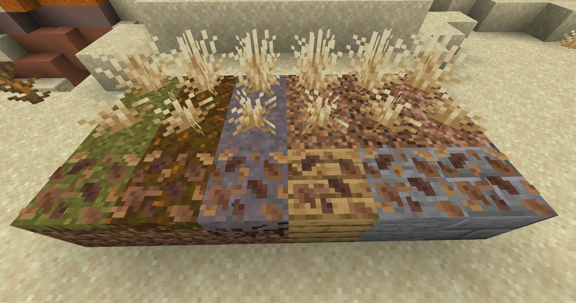 - New dry grass variants can be placed on different surfaces. Shears are required for harvesting.